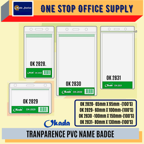 OKADA TRANSPARENT NAME BADGE -100'S / Transparent ID Name Tag / Badge Holder / ID Card Holder / Pemegang Kad