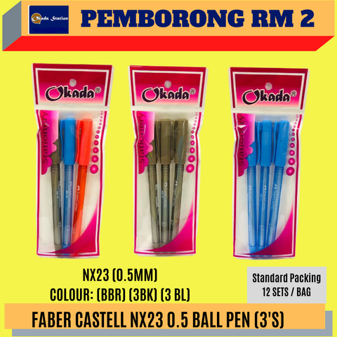 (RM2.20) Faber Castell NX23 Ball Pen 0.5 Set (3 in1) / Ball Pen / NX23 / 0.5mm Ball Pen / Pen Menulis