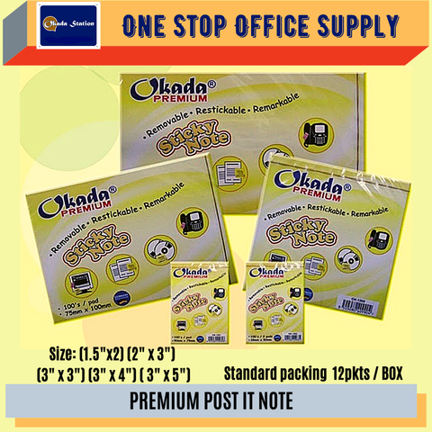 OKADA PREMIUM POST IT NOTE-ALL SIZE / STICKY NOTE / YELLOW STICKY NOTE / NOTA MELEKIT KUNING / NOTA MELEKAT