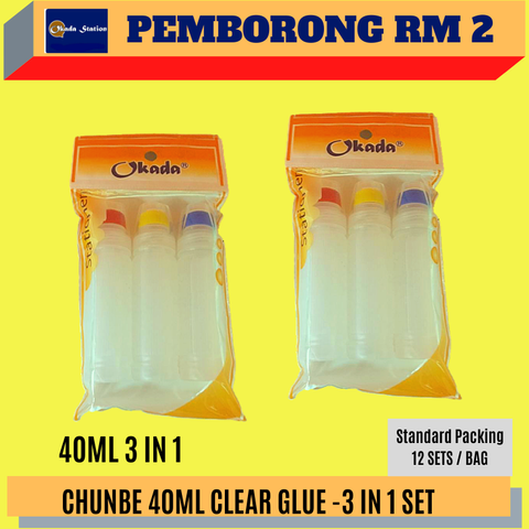 (RM2.20) OKADA CHUNBE Clear Glue (40ML/3IN1) / Stationery Glue / Water Glue / Student Water Glue / GAM AIR
